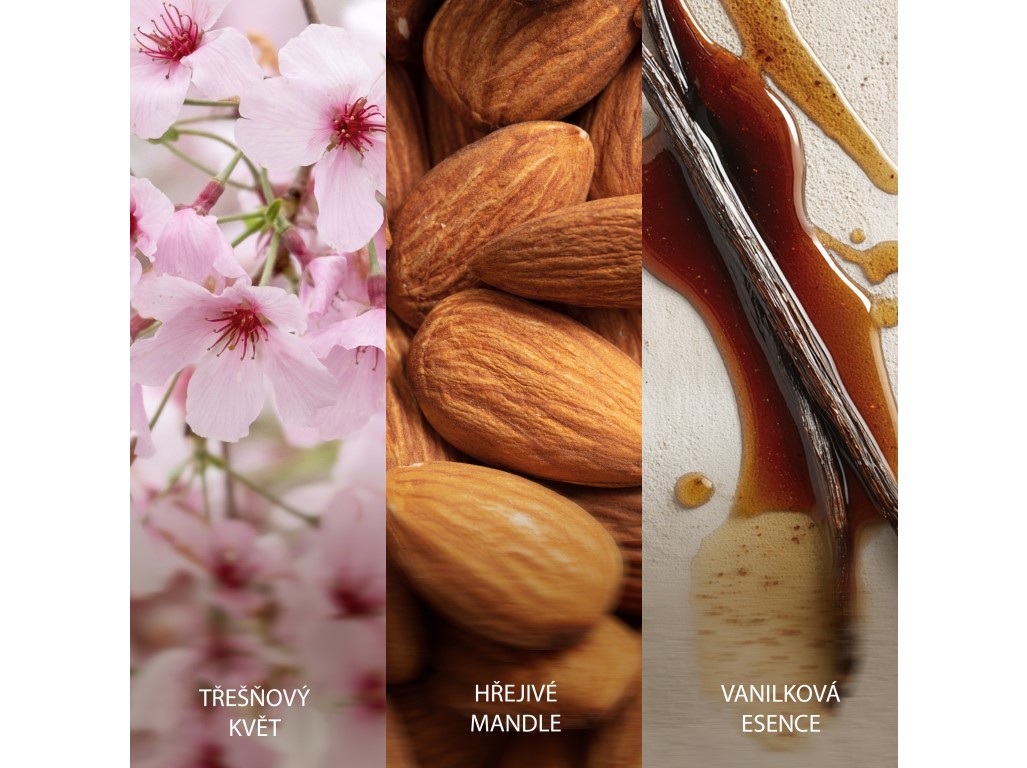Gyengéd cseresznyevirágok elegyednek vaníliával, naranccsal és mandulával. Édes, finom és megnyugtató meghittséget teremt.