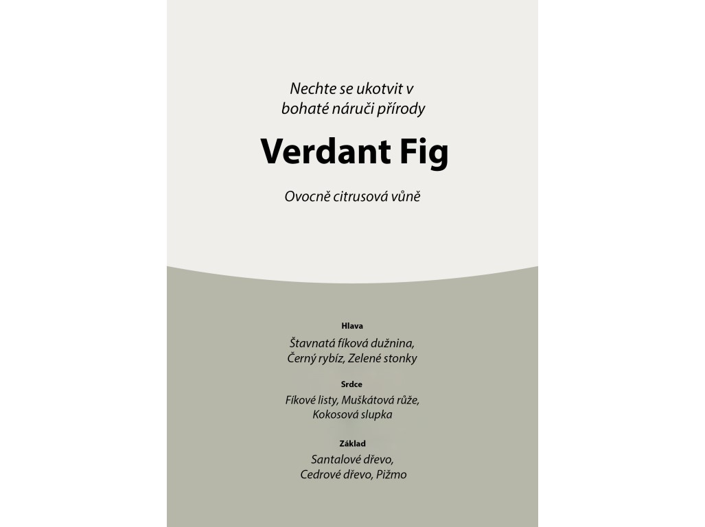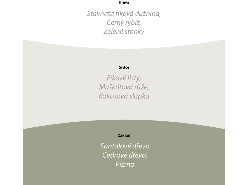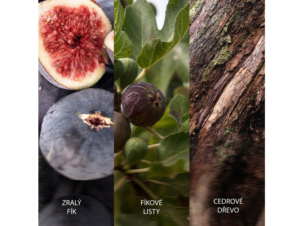 Lédús fügehús, fügelevél-akkordok és cédrusfa találkozása. Üde, enyhén édes, mégis elegánsan fás karakter.