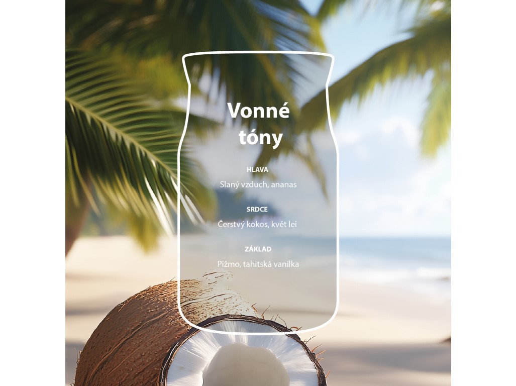 A trópusok íze: selymesen meleg kókusz, édes ananász és tahiti vanília csábító keveréke.